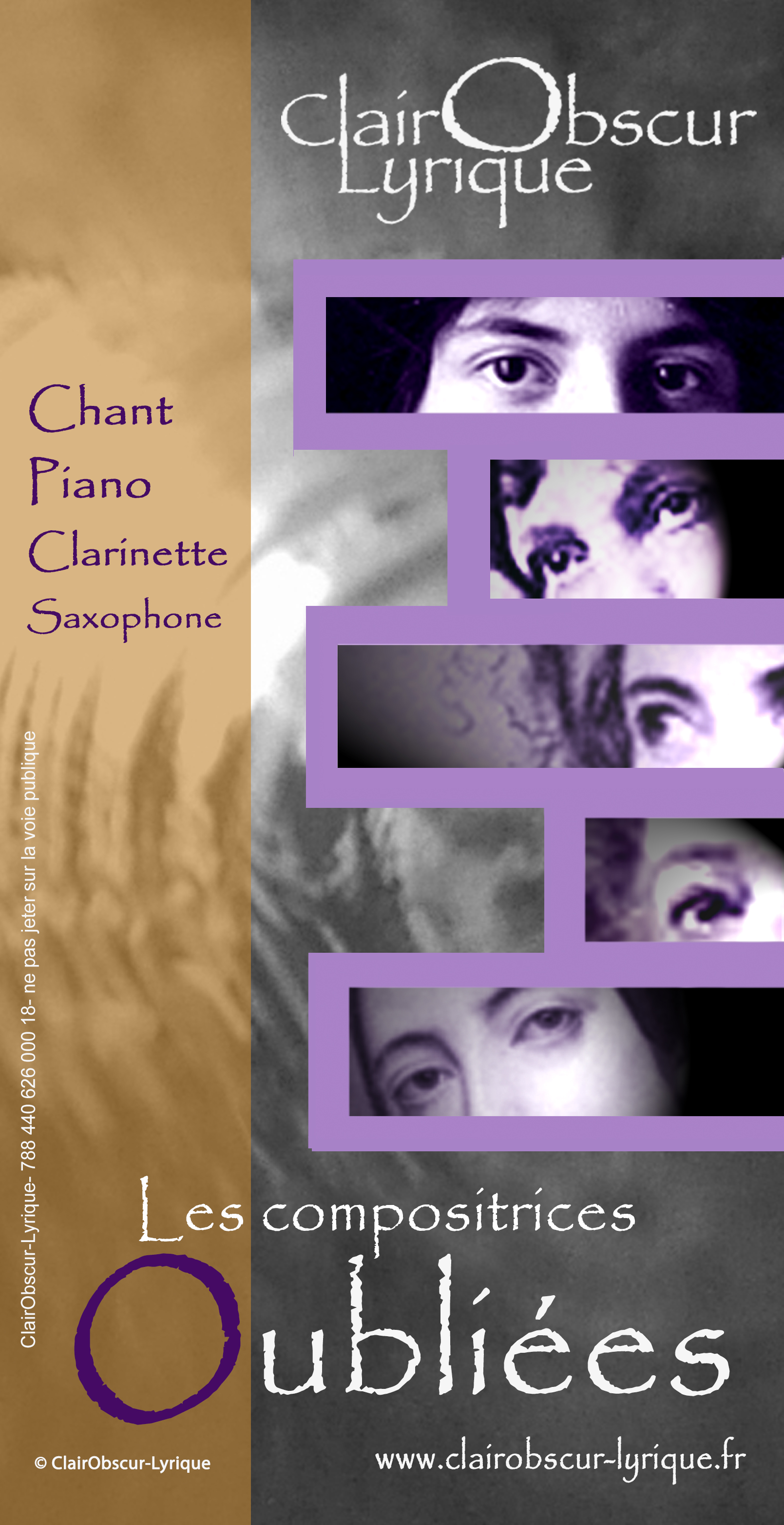 ClairObscur-Lyrique avec Sylvie Monot mezzo-soprano, Armelle Verguet à la clarinette et au saxophone, Fabien Garcia au piano, vous invite à les accompagner dans ce voyage aux couleurs féminines pour célébrer ces « Oubliées ».