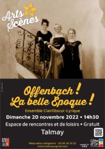 ClairObscur-Lyrique présente avec Sylvie Monot, Caroline Schmid et Mathilde Groffier, un concert lyrique flûte-chant-piano autour de la musique du grand Jacques Offenbach.