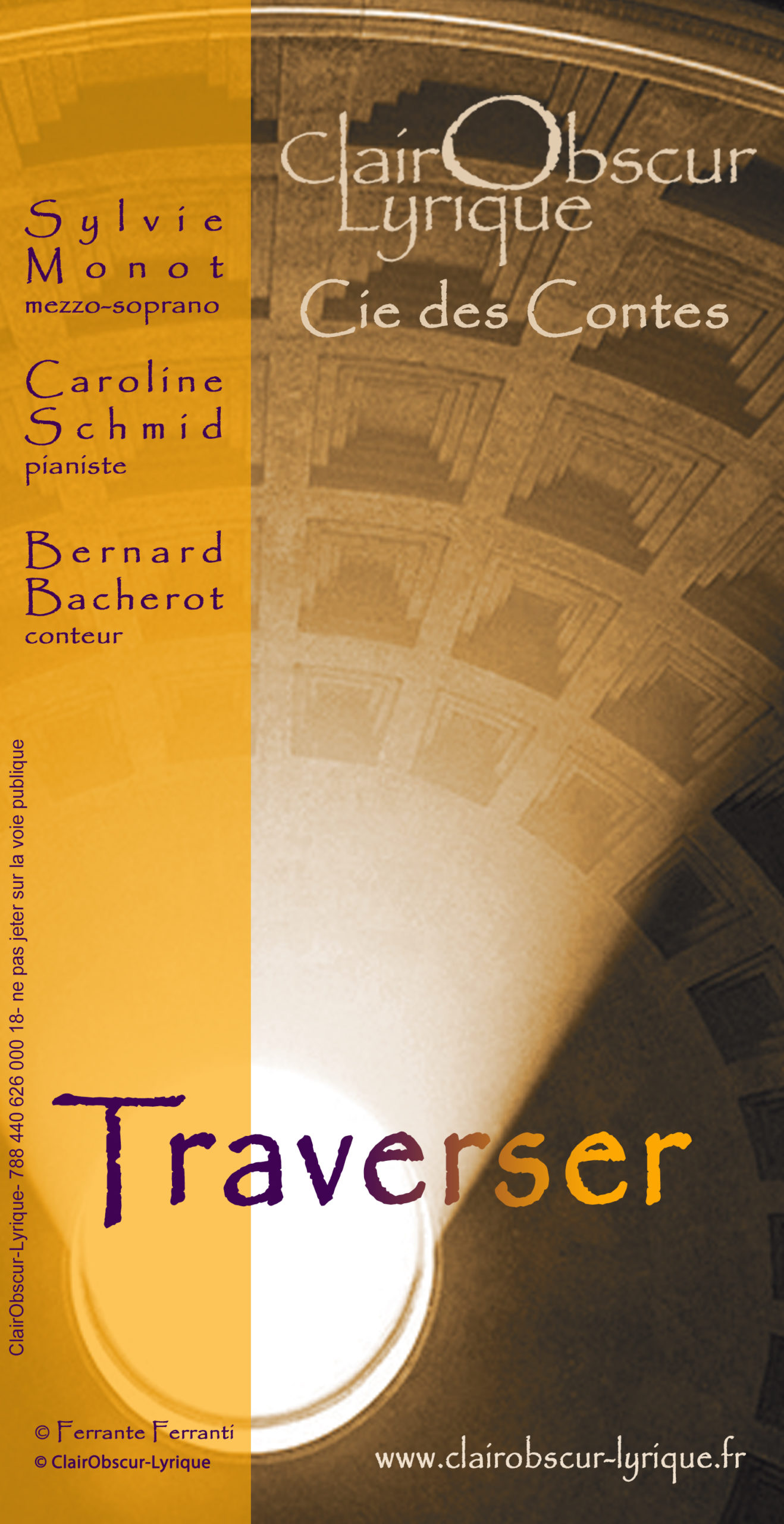 TRAVERSER, c’est ce qu’évoque ce spectacle Chant, Musique et Parole, avec Saint-Saëns, Hahn, Haendel, Poulenc, Ravel, Boulanger, Aragon, Verlaine, Cendrars et d’autres encore.